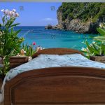 Tuinposter doorkijk wit venster MG h116xb163 cm + Tuinposter deur blauwe regen h260xb163 cm